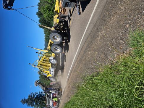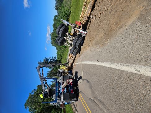ViewLumber Truck Wrecked - Avoiding Small Car