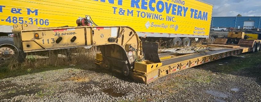 This trailer can accomodate loads from 5 to 60 tons. That's what makes it so very valuable to have in our fleet. We can transport oversize loads, trucks, containers, heavy equipment, and so much more.